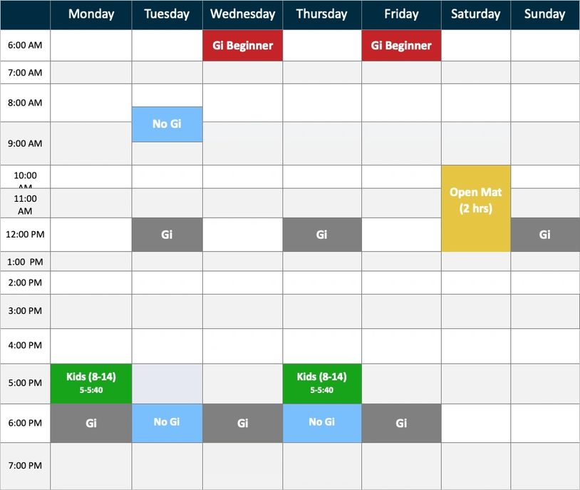 Our Gi classes provide students with a solid foundation of Brazilian Jiu Jitsu through basic theory, technique and principles, as well as positional sparring and drilling. Students wear the traditional jiu-jitsu gi while training.